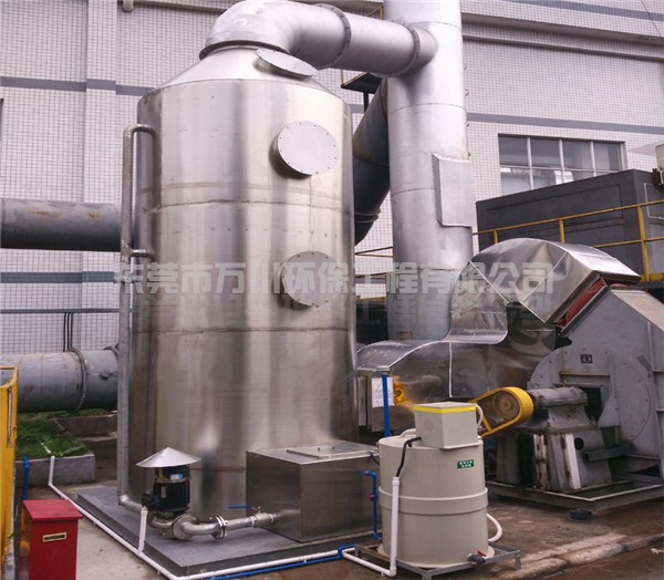 目前石材打磨粉塵主要的清除設備有濕式除塵設備。濕式除塵器由塔體、噴淋層、填料層、循環水泵、等裝置組成的,粉塵從塔底進入,穿過噴淋層,噴淋頭向下噴水,粉塵和水接觸并且溶于水,最后達到排放標準,在濕式除塵器運行過程中會產生污水和污泥,要妥善處理好污水和污泥。